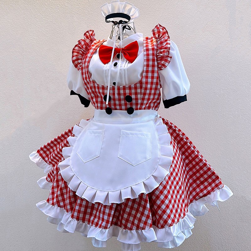 メイド服 撮影 可愛い 変装 コスチューム 赤格子タイプ