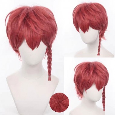 • ブルーロック  黒名蘭世ウィッグ 黒名ランゼ  カツラ コスプレウィッグ   三つ編み 短髪 赤い髪