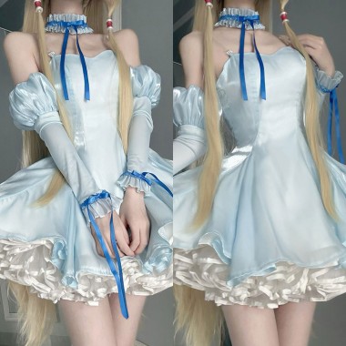 Chobits ちょびっツ ちぃ ドレス コスプレ衣装 かわいい 撮影 ブルーリボンのワンピース コスチューム